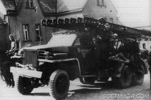Немцы первыми применили реактивные системы залпового огня во Второй мировой войне. 22 июня 1941 года против Брестской крепости было использовано 9 батарей 4-го полка минометов специального назначения. Это были шестиствольные 150-миллиметровые минометы "Небельверфер" (в честь создателя Рудольфа Небеля), много раз описанные в мемуарах советских ветеранов.